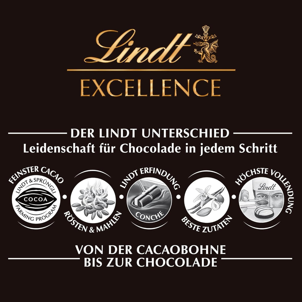 Lindt EXCELLENCE Salty Sweet Wood – chocolat noir de qualité supérieure, créé pour les amateurs de saveurs complexes. La barre de 100 g allie l'élégance suisse à des notes distinctes de réglisse salée, offrant une expérience intense mais douce, parfaite pour des moments gourmands ou comme petit cadeau avec un café ou du vin.